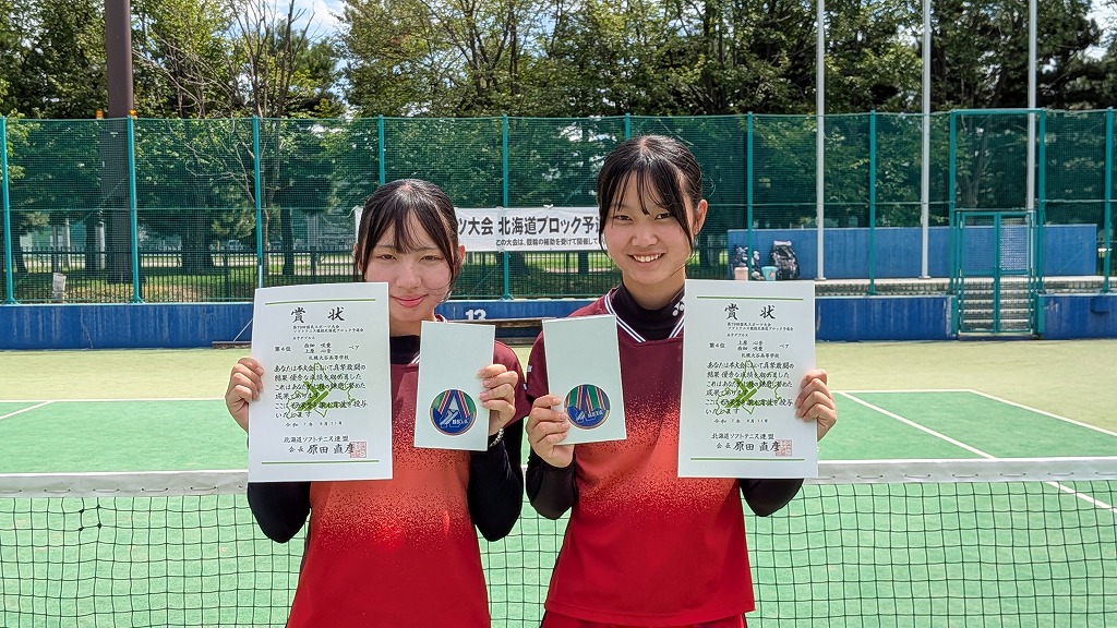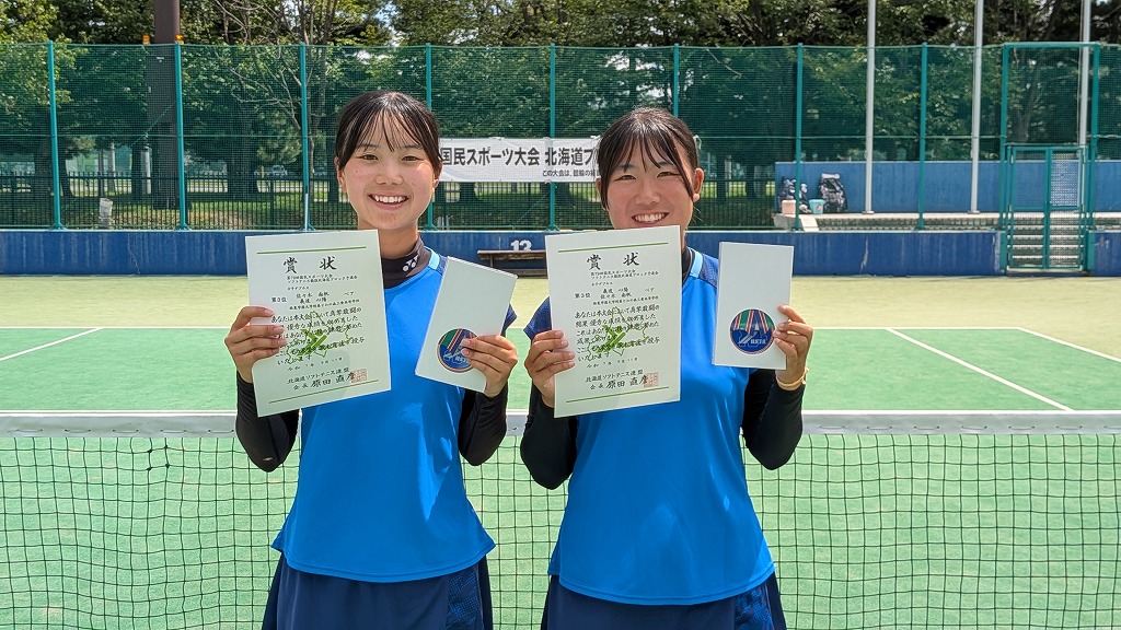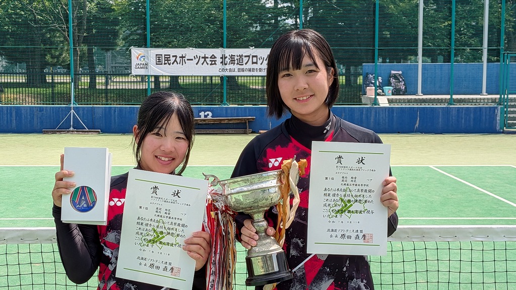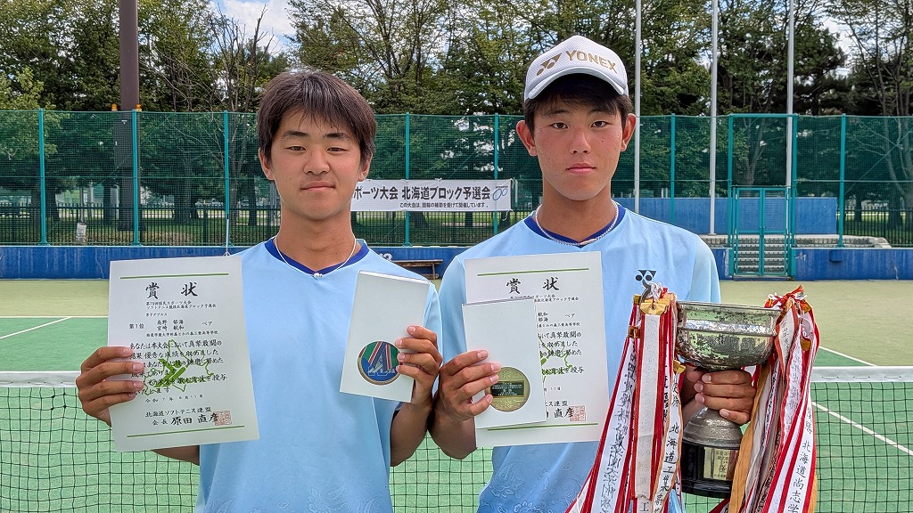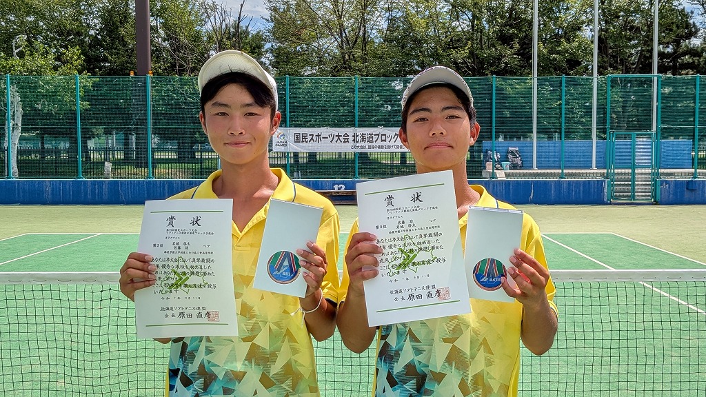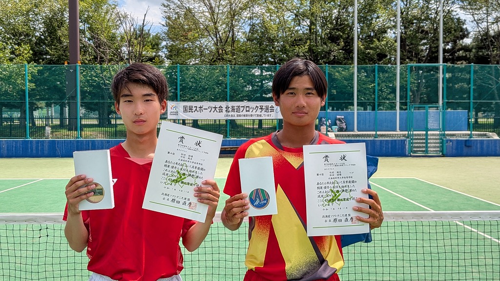 2025年度第79回国民スポーツ大会ソフトテニス競技北海道ブロック予選会 兼 北海道スポーツ大会(少年の部:ダブルス)の結果について 2025/8/26 事務局, 大会結果, 専門委員会, 広報委員会 標記の大会が2025年8月8日(金)〜10日(日)に旭川市(花咲スポーツ公園テニスコート)で開催されました。結果はこちら男女の表彰者の写真を掲載します。 ↑男子第1位 宮崎・高野ペア(とわの森三愛) ↑男子第2位 竹市・村上ペア(とわの森三愛) ↑男子第3位 岩城・佐藤ペア(とわの森三愛) ↑男子第4位 竹村・松田ペア(北海道科学大学) ↑女子第1位 渡辺・堀内ペア(札幌龍谷学園) ↑女子第2位 関・亀田ペア(とわの森三愛) ↑女子第3位 義達・佐々木ペア(とわの森三愛) ↑女子第4位 西畑・上原ペア(札幌大谷)