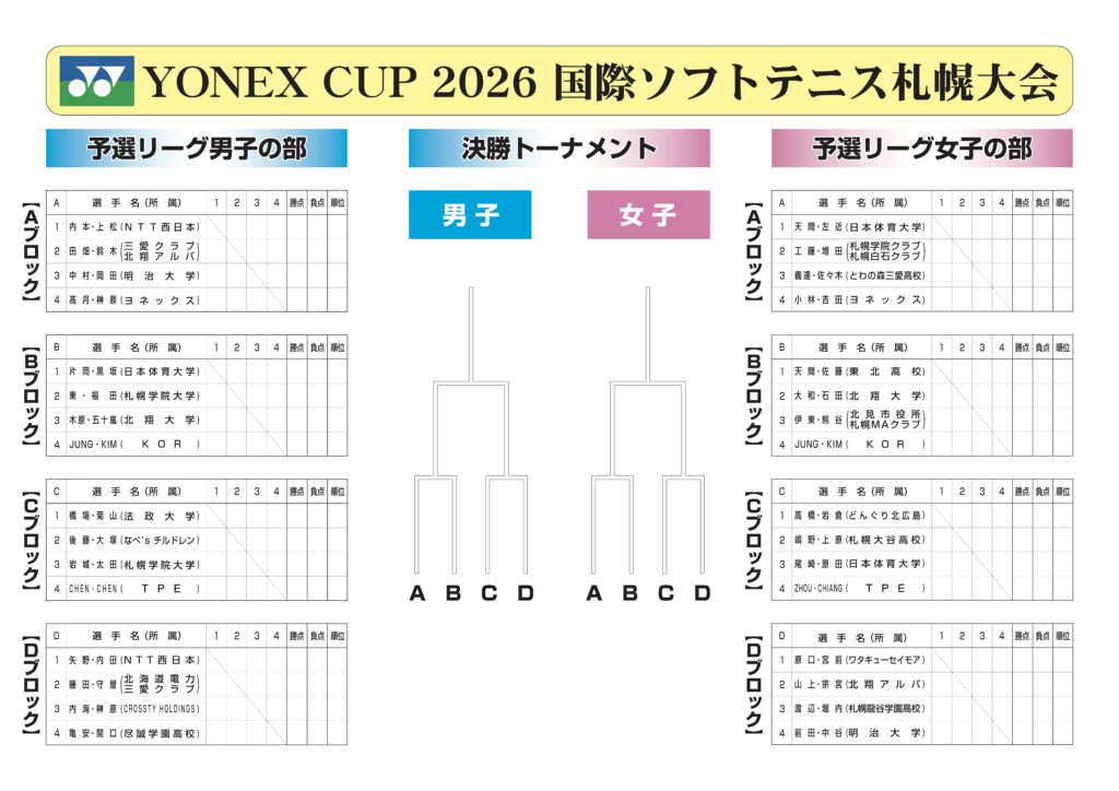 2026年1月25日(日)北海道立総合体育センター「北海きたえーる」にて開催される標記大会の組み合わせが決定いたしました。